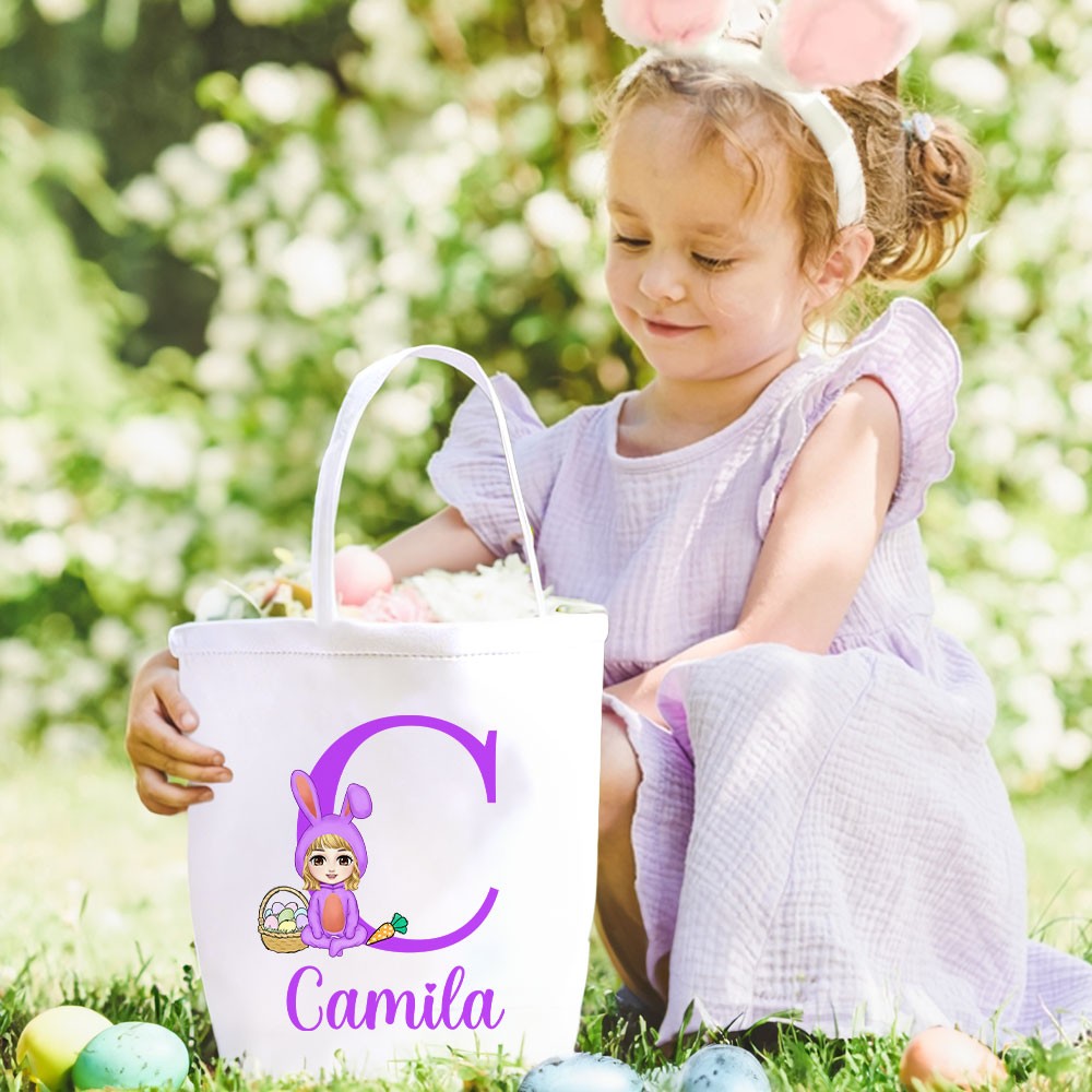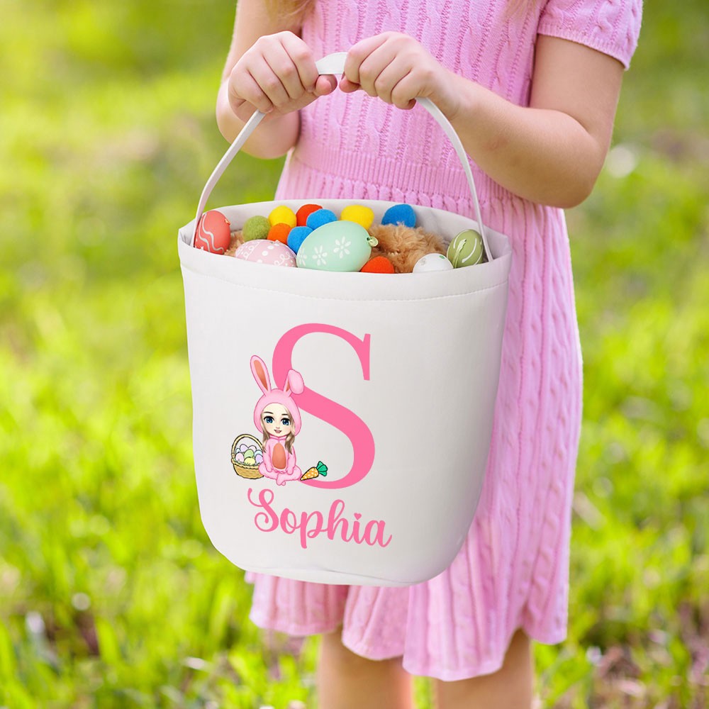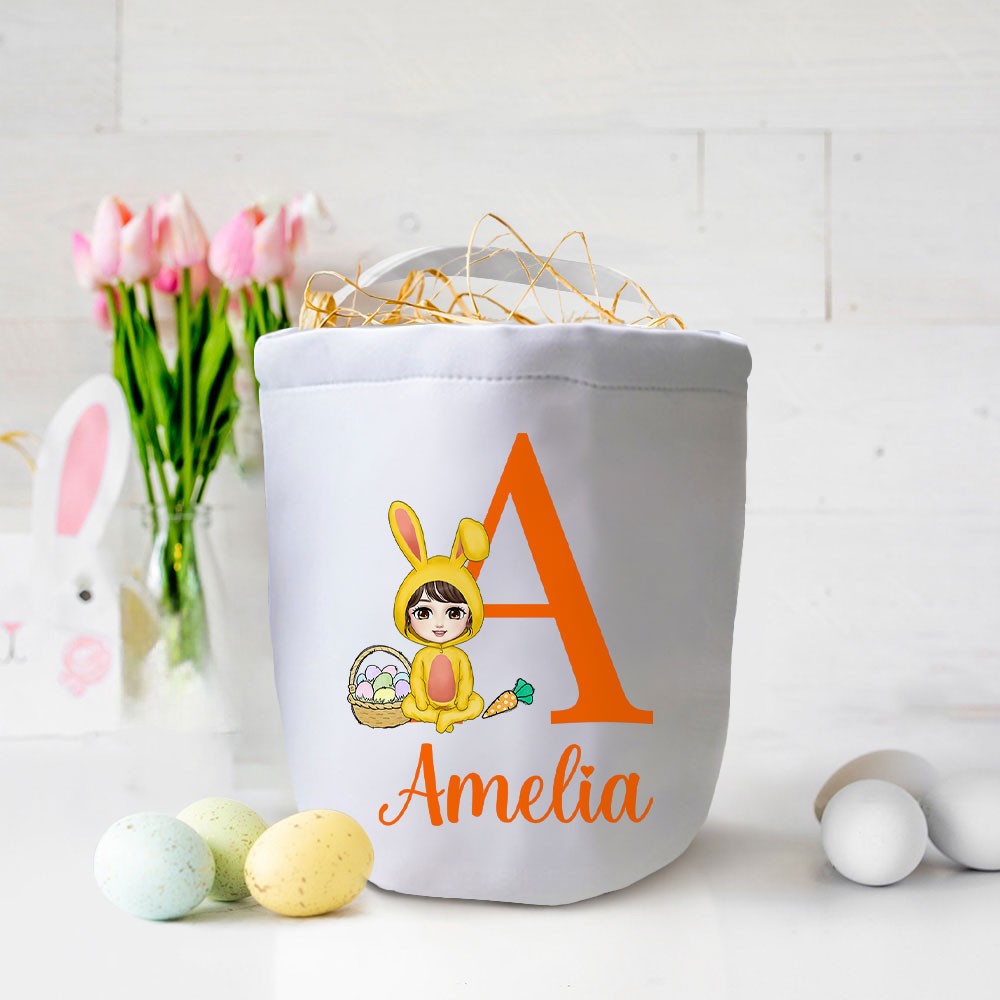 Custom Cute Bunny Cartoon Character Easter Basket with Alphabet, Easter Egg Hunt Basket with Handle, Easter Party Favor, Easter Gift for Boys/Girls