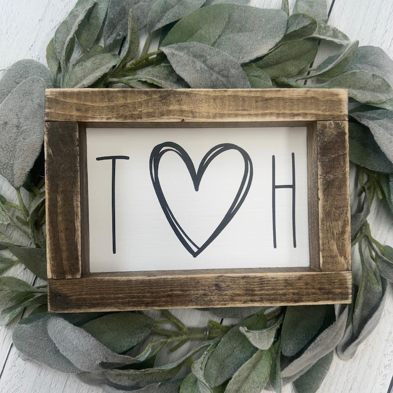 Such a sweet gift of decoration for any couple! Sign is shown in size 5x7 inches, but also available in size 6x13 inches.
